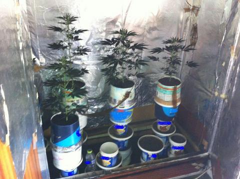 Έξι δενδρύλλια κάνναβης, ύψους από 40 έως 58 εκατοστών το καθένα, με πλήρες ριζικό σύστημα, τοποθετημένα σε αυτοσχέδιες πλαστικές γλάστρες, τρεις ηλεκτρικούς λαμπτήρες εκπομπής θερμότητας και δύο ανεμιστήρες για τον εξαερισμό του χώρου.