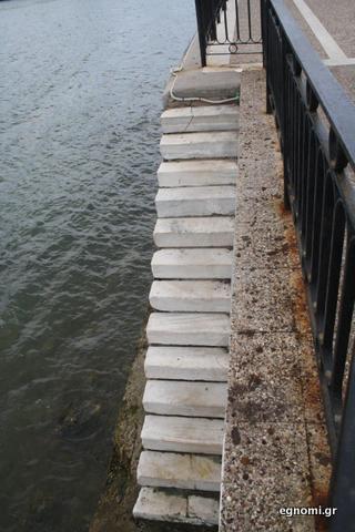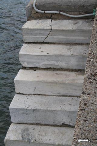 Ειδικά το πρώτο σκαλί έχει ραγίσει, όπως βλέπετε στην πιο κοντινή φωτο κάτω, ενώ επικίνδυνα είναι και τα δύο τελευταία σκαλιά, που είναι μέσα στο νερό.