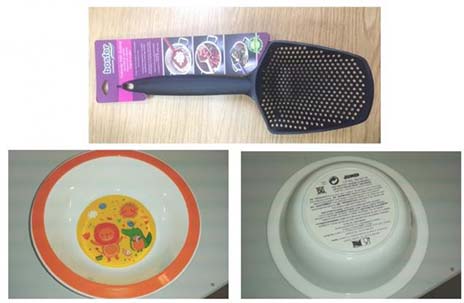 Κατά τη δοκιμή του παρατηρήθηκαν αποκολλήσεις της πλαστικής διακοσμητικής επίστρωσης τόσο στο εσωτερικό όσο και στο χείλος του μπολ. Συγκεκριμένα, πρόκειται για το παιδικό μπολ, με την εμπορική ονομασία "Μπολ πλαστικό ζούγκλα" και αριθμό παρτίδας Lot NO:RA 1401 - 04.