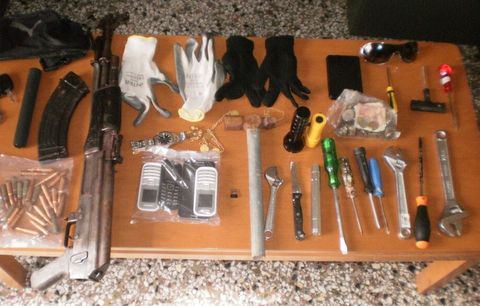 Ο ληστής ήταν πάνοπλος, αφού στο διαμέρισμά του βρέθηκε πολεμικό τυφέκιο τύπου Kalashnikov, 29 φυσίγγια διαμετρήματος 7.62mm, πτυσσόμενο γκλοπ, μαχαίρι, διαρρηκτικά εργαλεία, κ.α.