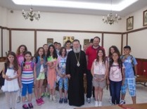 Ο Σεβασμιώτατος υποδέχθηκε τους μαθητές στην Αίθουσα του Θρόνου της Ιερής Μητρόπολης, οπού τους προσέφερε γλυκίσματα και συζήτησε μαζί τους και λίγο πριν αναχωρήσουν, τους προσέφερε μια μικρή ευλογία.