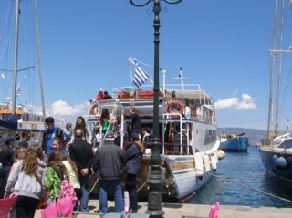 Η αποστολή του 4ου Γυμνασίου έφτασε οδικώς μέχρι το Μετόχι Αργολίδας και από εκεί με μεγάλο ναυλωμένο πλοιάριο πέρασαν στο νησί. Έχοντας αρκετό χρόνο στην διάθεσή τους περπάτησαν για αρκετή ώρα στα γραφικά σοκάκια της πόλης, ανέβηκαν σχεδόν έως την κορυφή του λόφου, περιπλανήθηκαν στα δρομάκια της άνω πόλης φωτογραφίζοντας τα παλαιά αρχοντικά.