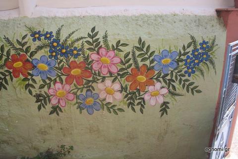 Όπως πληροφορηθήκαμε, ο καλλιτέχνης που ζωγράφισε την μάντρα είναι ο ζωγράφος Σάββας Κάμπαξης, ο οποίος πράγματι ομόρφυνε την αυλή με την δημιουργία του.