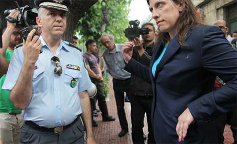 Ήρθε αντιμέτωπος με τους πρώην εργαζόμενους του ξενοδοχείου «Πεντελικόν», οι οποίοι βρέθηκαν έξω από το υπουργείο Εργασίας και άρχισαν να σπρώχνουν τον αστυνομικό κλοιό με αποτέλεσμα να τον σπάσουν και να μπουν στο εσωτερικό του κτιρίου.