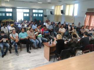 Στη φωτογραφία στιγμιότυπο από την Γενική Συνέλευση του Σωματείου, στο Εργατικό Κέντρο.