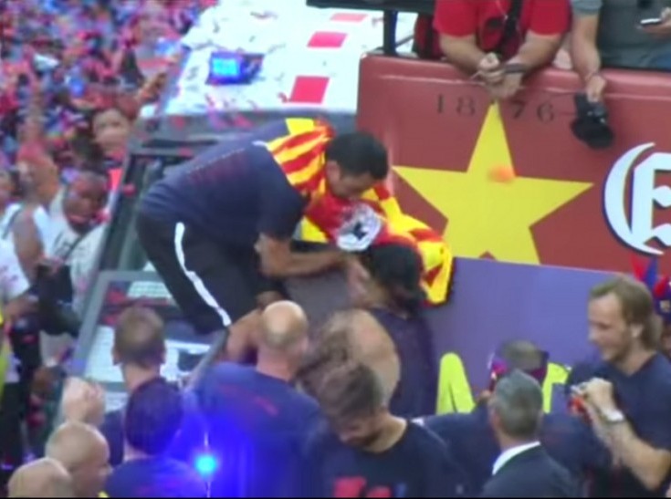 Ενα απρόοπτο απαθανάτισε ο φακός στα πανηγύρια της Μπαρτσελόνα για την κατάκτηση του Champions League. Το συμβάν συνέβη πάνω στο πούλμαν που μετέφερε του παίκτες στο Καμπ Νου για να γιορταστεί η κούπα και είχε πρωταγωνιστή τον Τσάβι με τον Νεϊμάρ.