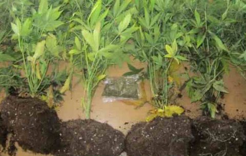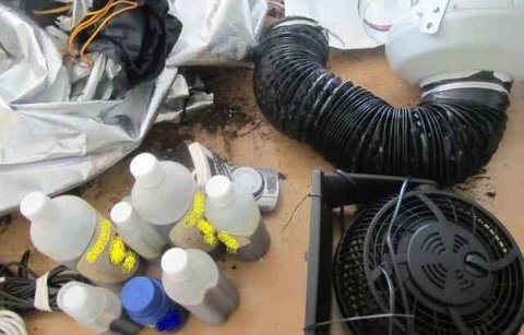 Έξι δενδρύλλια κάνναβης, πλήρους ωρίμανσης, ύψους από 80 έως 100 εκατοστών το καθένα φυτεμένα σε πλαστικές γλάστρες, σκηνή μαύρου χρώματος, επενδεδυμένη με ανακλαστική επιφάνεια, ηλεκτρικός λαμπτήρας και τέσσερις αεραγωγοί.Επίσης βρέθηκε φίλτρο αέρα και ανεμιστήρας, ηλεκτρονικό θερμόμετρο, ενισχυτής ρεύματος και χρονοδιακόπτης, επτά πλαστικά μπουκάλια με υγρό λίπασμα, καθώς και 29,7 γραμμάρια ακατέργαστης κάνναβης.