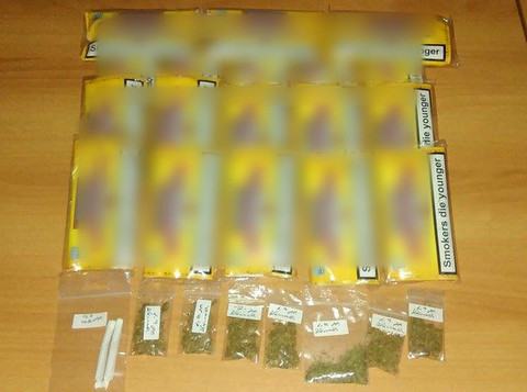 Επίσης βρέθηκαν 18 συσκευασίες, οι οποίες περιείχαν ποσότητα αδασμολόγητου καπνού, συνολικού μεικτού βάρους 900 γραμμαρίων και δύο αυτοσχέδια τσιγάρα, τα οποία περιείχαν μικροποσότητα ακατέργαστης κάνναβης, αναμεμειγμένη με καπνό.