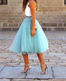 Μια εντυπωσιακή φούστα σε έντονο χρώμα συνδυασμένη με μπλουζάκι και ψηλοτάκουνα δίνουν ένα μοναδικό σύνολο. Δοκιμάστε το!