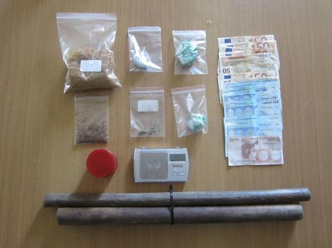 Συγκεκριμένα οι αστυνομικοί βρήκαν στο αυτοκίνητο τρεις νάιλον συσκευασίες, οι οποίες περιείχαν ποσότητα ακατέργαστης κάνναβης, συνολικού μεικτού βάρους (8,7) γραμμαρίων, μία νάιλον συσκευασία, η οποία περιείχε μικροποσότητα ακατέργαστης κάνναβης, αναμεμειγμένη με καπνό, μία ηλεκτρονική ζυγαριά ακριβείας, δύο ξύλινες ράβδους (γκλομπ), καθώς και το χρηματικό ποσό των 840 ευρώ.