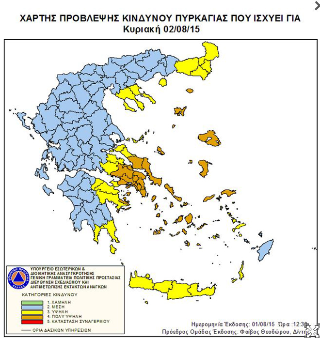 Υψηλός είναι σήμερα ο κίνδυνος πυρκαγιάς σύμφωνα με τον χάρτη  με το Χάρτη Πρόβλεψης Κινδύνου Πυρκαγιάς που εκδίδει η Γενική Γραμματεία Πολιτικής Προστασίας του υπουργείου Εσωτερικών & Διοικητικής Ανασυγκρότησης.
