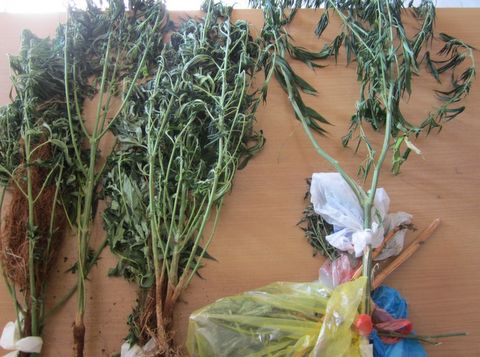 Επίσης βρέθηκε ένας κορμός δενδρυλλίου κάνναβης, εκριζωμένος και αποξηραμένος, ύψους επίσης 1,20 περίπου μέτρων και δύο νάιλον σακούλες με λίπασμα.