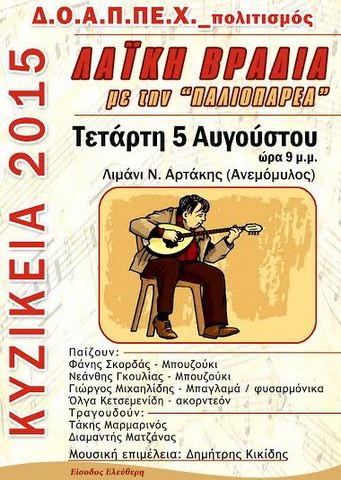 Εκδηλώσεις θα πραγματοποιηθούν όλο τον Αύγουστο στην Αρτάκη, στα πλαίσια εορτασμού των «ΚΥΖΙΚΕΙΩΝ 2015», που πλέον αποτελούν θεσμό για την πόλη. Όλες οι εκδηλώσεις διοργανώνονται από τον ΔΟΑΠΠΕΧ και αφορούν όλους τους πολίτες, μικρούς και μεγάλους.