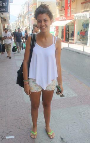 Όσο για το ντύσιμό της προέρχεται από τις αγορές που έκανε πέρσι στη Μυτιλήνη, το νησί που είχε επισκεφτεί κατά τη διάρκεια των θερινών διακοπών της.