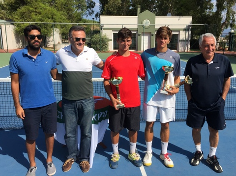 Στη φωτογραφία κάτω ο πρόεδρος της Ελληνικής Ομοσπονδίας Αντισφαίρισης Σπύρος Ζανιάς, ο πρόεδρος του ΟΑΧ Γρηγόρης Δάσκος και οι νικητές διπλού των αγοριών.