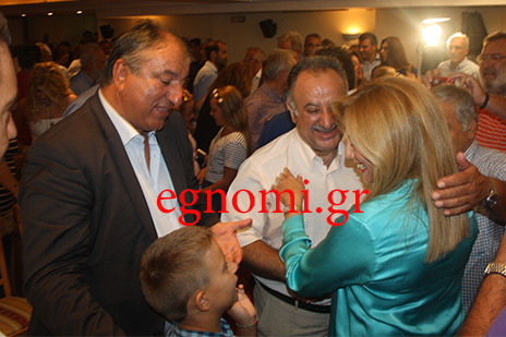 Οι πολιτευτές του ΠΑΣΟΚ Θανάσης Τάρτης και Γιάννης Μπουροδήμος έσπευσαν να χαιρετίσουν την Φώφη Γεννηματά μετά την ομιλία της στη Χαλκίδα, αλλά ήταν άλλος αυτός που κέρδισε την προσοχή της προέδρου του ΠΑΣΟΚ.