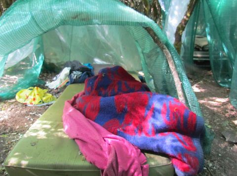 Επιπλέον, κοντά στην φυτεία και σε απόσταση 50 περίπου μέτρων, εντοπίσθηκαν τρία παραπήγματα, στα οποία έμεναν οι δράστες κατά την διάρκεια της καλλιέργειας των δενδρυλλίων.