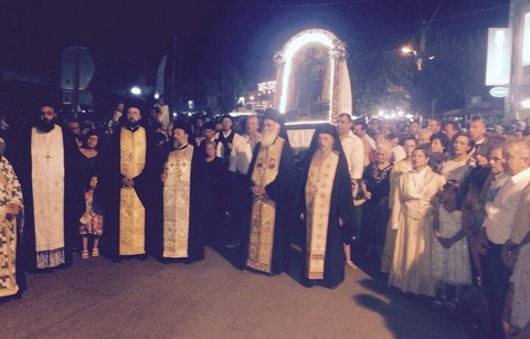 Πριν την έξοδο για την Λιτανεία της Ιερής Εικόνας, ο Σεβασμιώτατος τίμησε με το οφίκιο του Οικονόμου τον Εφημέριο της Ενορίας π. Ιωάννη, ο οποίος εργάζεται τίμια και ευσυνείδητα στον Αμπελώνα του Χριστού.