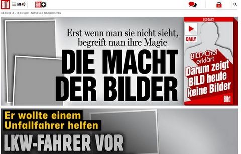 Αναμφισβήτητα το πείραμα της BILD ήταν ενδιαφέρον και απέδειξε την δύναμη της εικόνας, την οποία είχαν διαγνώσει πρώτοι οι Κινέζοι, στους οποίους αποδίδεται η φράση "Μία εικόνα ίσον χίλιες λέξεις". Δείτε κάτω το ιστορικό πρωτοσέλιδο της BILD χωρίς φωτογραφίες.