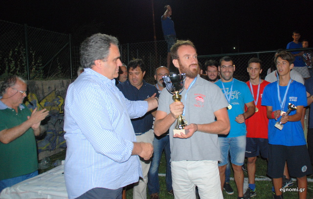 Ο Δήμαρχος Γιώργος Ψαθάς έκανε την απονομή στον αρχηγό της ομάδας Χαράλαμπο Ρουμπή μέσα σε γιορτινή ατμόσφαιρα.