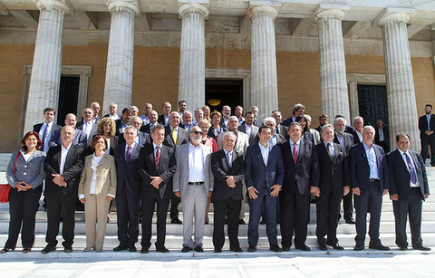 Δείτε προσεκτικά τις φωτογραφίες και θα διαπιστώσετε την αγωνιώδη προσπάθεια του κ. Κατρούγκαλου να φανεί ψηλότερος από τον Ευβοιώτη υπουργό Βαγγέλη Αποστόλου και μάλιστα όχι σε μία στιγμιαία πόζα, αλλά επί αρκετή ώρα, αφού στέκεται στις μύτες από την ώρα που καταφθάνει ο πρωθυπουργός μέχρι την στιγμή της επίσημης φωτογράφισης.
