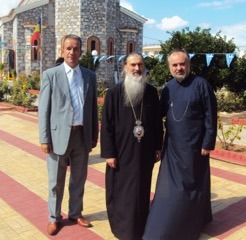 Στη φωτογραφία πάνω τον βλέπετε δίπλα στον Αρχιεπίσκοπο Τόμιδος κ. Θεοδόσιος και στον πατέρα Δανιήλ. Στη φωτογραφία κάτω, ο Σταύρος Μακαρίου με την Ρουμανική αντιπροσωπεία ιερέων, η οποία συνόδευσε τα λείψανα των Αγίων στην Αυλίδα.