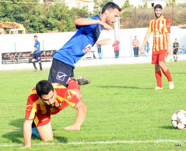 Ιδανικό ξεκίνημα έκαναν οι φιλοξενούμενοι και προηγήθηκαν μόλις στο 2' με έα γκολ του νεαρού Νίκου Λειβαδίτη ο οποίος βρέθηκε σε πλεονεκτική θέση λίγο μετά τη γραμμή στην αντίπαλη περιοχή και σούταρε ψύχραιμα. Η μπάλα βρήκε το δοκάρι αλλά ο μικρός δεν σταματησε την προσπάθεια και στην επιστροφή της με εξαιρετικό γυριστό σουτ πέτυχε το 0-1.