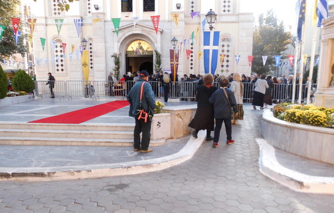 Στις φωτογραφίες του egnomi.gr βλέπετε στιγμιότυπα από τον εξωτερικό χώρο του ιερού ναού το πρωί της Δευτέρας 26 Οκτωβρίου, ανήμερα της γιορτής του Αγίου Δημητρίου, ημέρα κατά την οποία πανηγύριζε ο Μητροπολιτικός ιερός ναός της Χαλκίδας.