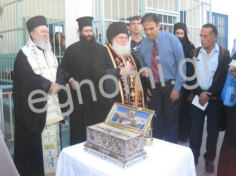 Η Αγία Ζώνη κατέφθασε στη Φυλακή περίπου στις 11:45 το πρωί, συνοδευόμενη από τον Μητροπολίτη κ. Χρυσόστομο και τον ηγούμενο της Μονής Βατοπαιδίου Εφραίμ, με πρωτοβουλία του οποίου έγινε η επίσκεψη.