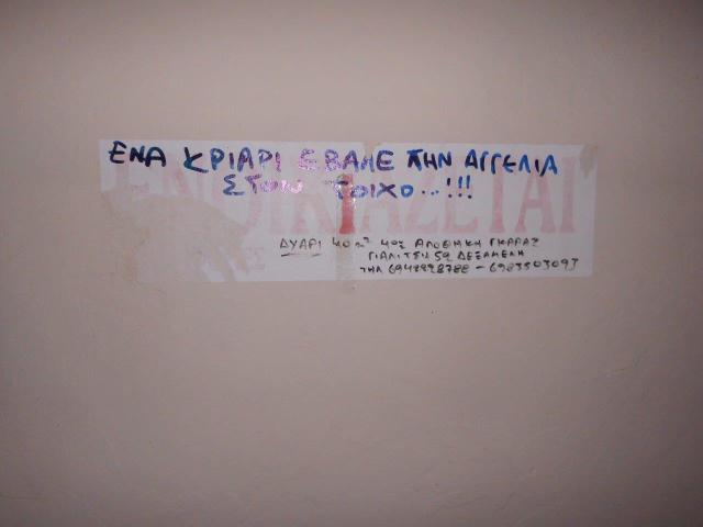 Συνέχεια, όμως, έδωσε ο ...αγανακτισμένος που έγραψε από πάνω «Ένα κριάρι έβαλε την αγγελία στον τοίχο». Ξέχασε, όμως, να μας ενημερώσει τι είδους ζώο είναι ο ίδιος που έγραψε πάνω στον τοίχο!