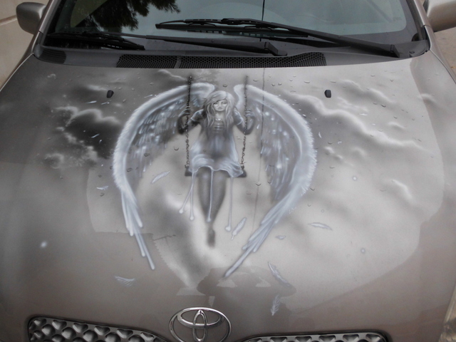 Ζωγράφισε ένα αγγελούδι ανάμεσα σε σύννεφα και απογείωσε το ΙΧ του τουλάχιστον από αισθητική πλευράς. Αν και όλα είναι θέμα γούστου.