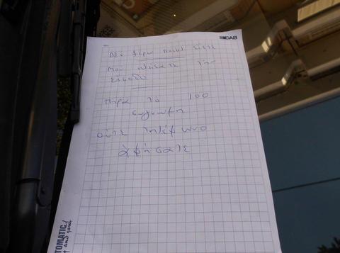 Κάλεσε το 100, επειδή του έκλεισε την είσοδο, αλλά άφησε ευγενικό σημείωμα στο αμάξι.