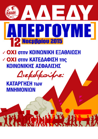 Επίσης καλεί σε συμμετοχή στην μετάβαση στην Αθήνα την Πέμπτη 12 Νοεμβρίου, με λεωφορεία που θα ξεκινήσουν από το Βούρκο στις 9:30 το πρωί για μαζική συμμετοχή στο μεγάλο συλλαλητήριο που θα πραγματοποιηθεί στην πλατεία Κλαυθμώνος. (Δηλώσεις συμμετοχής στο τηλ. 6936192429)