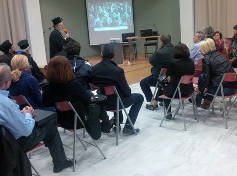 O Σεβασμιώτατος απηύθυνε, στην αρχή των εργασιών σύντομο χαιρετισμό, όπου συνεχάρη όλους τους ευαισθητοποιημένους, γιʼ αυτό το σπουδαίο θέμα, επιστήμονες και φορείς. Δήλωσε ότι η πρόληψη και η αντιμετώπιση των κρίσεων στο Σχολικό περιβάλλον και το bulling εξαρτώνται κυρίως από τον στόχο της Παιδείας και των φορέων της αγωγής, όσον αφορά τον τύπο του ανθρώπου που θέλουμε να οικοδομήσουμε.