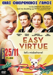 Μετά την επίσημη έναρξη των κινηματογραφικών προβολών για τη φετινή χειμερινή περίοδο, στον πολυχώρο του REXστα Ψαχνά, η συνέχεια δίνεται με την ταινία «Easy Virtue (Ένας Ονειρεμένος Γάμος)», η προβολή της οποίας θα γίνει την Τετάρτη 25 Νοεμβρίου, στις 9 το βράδυ.
