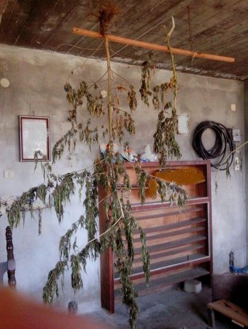 Σε έρευνα που ακολούθησε τόσο στο σπίτι του, όσο και σε δύο αποθήκες στην αυλή του σπιτιού βρέθηκαν συνολικά και κατασχέθηκαν τρία ξεριζωμένα δενδρύλλια κάνναβης, σε φάση αποξήρανσης, ύψους από 1,5 έως 2 μέτρα.