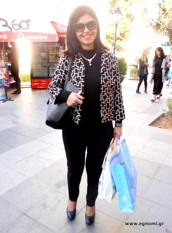 Φροντίζει, όμως και για άλλους. Ο φακός του egnomi.gr την εντόπισε στην οδό Αβάντων της Χαλκίδας να ψωνίζει παπούτσια για τους δυο γιους της. Εξίσου κομψοί θα είναι, αφού επιλέγει η μητέρα τους τι θα φορέσουν.