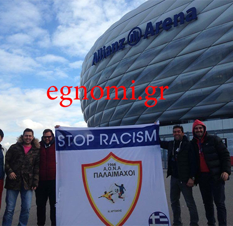 Ανάμεσά τους ήταν και μια παρέα Αρτακιανών, που ύψωσαν έξω από την Allianz Arena και έπειτα στην εξέδρα του γηπέδου, το πανό του ΑΟΝΑ Αρτάκης, που βλέπετε.