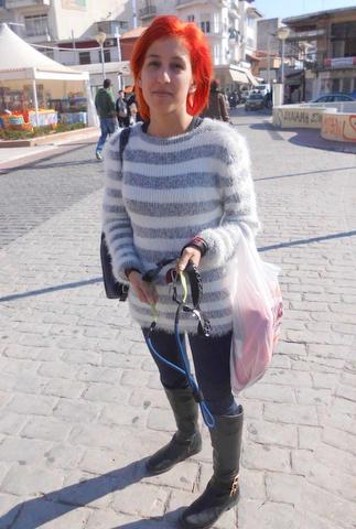Το γνωστό βιβλίο "Βαμμένα κόκκινα μαλλιά", που έγινε και πετυχημένο σήριαλ στην τηλεόραση μας θύμισε η Βαγγελίτσα Μπαλτά, την οποία φωτογραφίσαμε πρόσφατα, γιατί μας εντυπωσίασε στο σούπερ κόκκινο χρώμα των μαλλιών της.