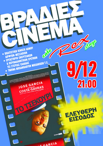 Οι κινηματογραφικές προβολές συνεχίζονται και το Δεκέμβριο στο Δήμο Διρφύων-Μεσσαπίων, με την τρίτη προβολή της ταινίας του Κώστα Γαβρά “Το τσεκούρι”, την Τετάρτη 9 Δεκεμβρίου, στις 9 το βράδυ, στον πολυχώρο του REX στα Ψαχνά.