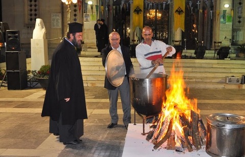 Το ανακάτεμα της φασολάδας ανέλαβε ο Δήμαρχος Χρήστος Παγώνης και μάλιστα υπό ...θρησκευτική επιτήρηση, αφού τον παρακολουθούν οι ιερείς του Αγίου Νικολάου, ο αρχιμανδρίτης Χρυσόστομος Καλύβας και ο πρωτοπρεσβύτερος Ηλίας Αγιαννίτης.