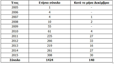 Από την έναρξη λειτουργίας του Τμήματος Δίωξης Ηλεκτρονικού Εγκλήματος της Διεύθυνσης Ασφάλειας Αττικής το 2004 μέχρι και σήμερα (ίδρυση Υποδιεύθυνσης Δίωξης Ηλεκτρονικού Εγκλήματος το 2011 και Διεύθυνσης Δίωξης Ηλεκτρονικού Εγκλήματος το 2014), το εξειδικευμένο προσωπικό της Υπηρεσίας μας χειρίστηκε τον παρακάτω αριθμό αναγγελιών πρόθεσης αυτοκτονίας μέσω Διαδικτύου (ετήσιο σύνολο και κατά το μήνα Δεκέμβριο):