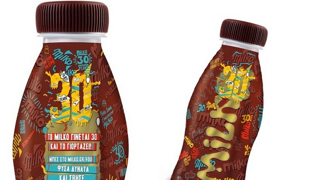 Με επετειακό μπουκάλι 500 ml γιορτάζει τα 30 χρόνια ζωή το Milko. Η γιορτινή συσκευασία συνοδεύεται από το σβήσιμο κεριών για τα γενέθλια του σοκολατούχου ροφήματος.