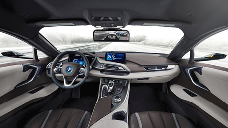 Η BMW θα είναι πιθανότατα ο πρώτος κατασκευαστής αυτοκινήτων, που θα καταργήσει τους κλασικούς καθρέπτες. Το i8 που παρουσιάστηκε ως πρωτότυπο στο Λας Βέγκας διαθέτει κάμερες αντί για εξωτερικούς καθρέπτες καθώς και δύο μικροσκοπικές, στερεοσκοπικές κάμερες χαμηλά στο πίσω κρύσταλλο, οι οποίες μεταδίδουν πλήρη εικόνα για όσα συμβαίνουν ακριβώς πίσω από το αυτοκίνητο.