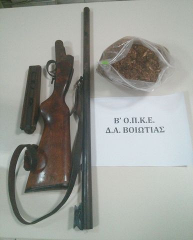 Συγκεκριμένα βρέθηκε στην κατοχή του ένα κυνηγετικό όπλο, το οποίο δεν είχε δηλωθεί νόμιμα και το κατείχε παράνομα, καθώς και μισό κιλό λαθραίου καπνού, ο οποίος δεν είχε δασμολογηθεί, όπως προβλέπεται από την σχετική νομοθεσία.
