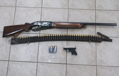 Συγκεκριμένα βρέθηκαν στην κατοχή του και κατασχέθηκαν ένα κυνηγετικό όπλο, ένα πιστόλι, 36 φυσίγγια κυνηγετικού όπλου και μία θήκη φυσιγγίων, τα οποία -όπως διαπιστώθηκε- κατείχε χωρίς να διαθέτει τις απαραίτητες άδειες κατοχής όπλων.