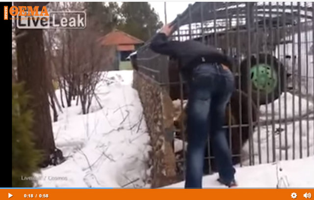 Δραματική κατάληξη είχε το «παιχνίδι» ενός Ρώσου με μια αρκούδα που ήταν κλεισμένη σε κλουβί. Ο άντρας ήταν προφανώς μεθυσμένος, όπως προκύπτει από τον τρόπο ομιλίας του στο βίντεο που κυκλοφόρησε.