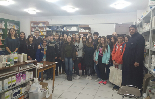 Την Τετάρτη 10 Φεβρουαρίου μαθητές του 5ου Γυμνασίου Χαλκίδας επισκέφθηκαν το Κοινωνικό Ιατρείο και Φαρμακείο της Ιερής Μητρόπολης Χαλκίδας, προκειμένου να παραδώσουν φαρμακευτικό υλικό, το οποίο με πρωτοβουλία των διδασκόντων και συμμετοχή των μαθητών και των γονέων τους, συγκεντρώθηκε στο Σχολείο.