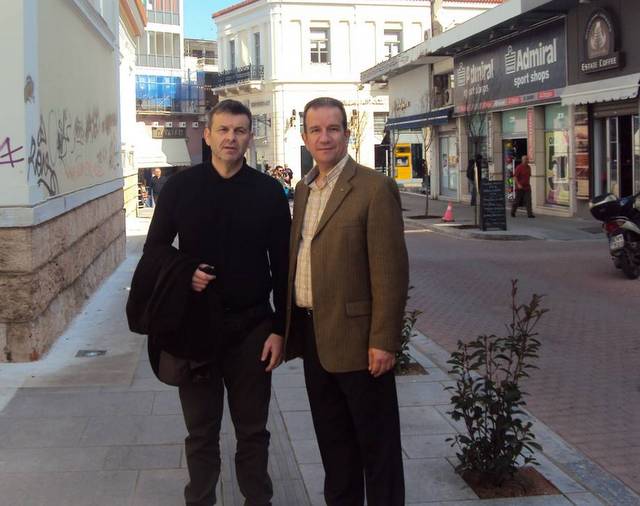 Ωστόσο, ο Απόστολος Γκλέτσος ήρθε πολύ νωρίτερα στην πόλη και συνάντησε φίλους του μεταξύ των οποίων και τον Σταύρο Μακαρίου. Ο φωτογραφικός φακός του egnomi.gr εντόπισε τους δύο φίλους να απολαμβάνουν τη βόλτα τους στην ηλιόλουστη Χαλκίδα.
