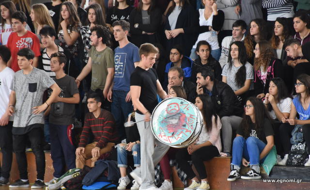 Φοβερή ήταν η εξέδρα στον τελικό μπάσκετ Λυκείων (αγοριών) που έγινε τη Δευτέρα στο ΔΑΚ Χαλκίδας και θύμιζε ατμόσφαιρα από μεγάλο ντέρμπι.